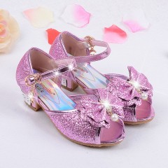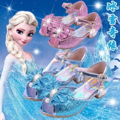 新款冰雪奇缘梦幻女童高跟鞋儿童凉鞋蝴蝶结正品童鞋爆款跟鞋