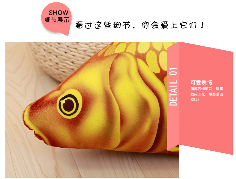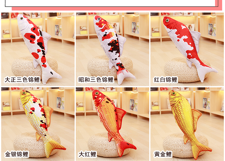 商品名称:可爱仿真锦鲤鱼抱枕毛绒玩具年年有余鱼公仔宠物玩具宠物用品