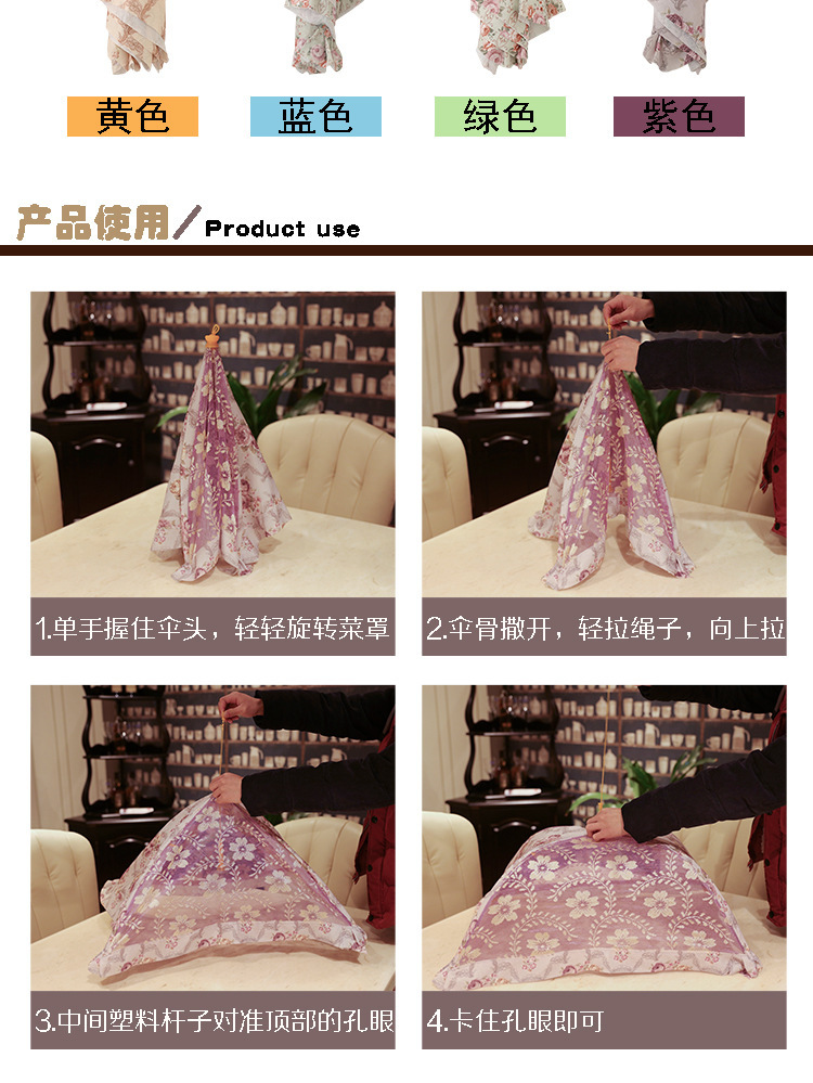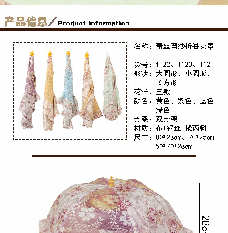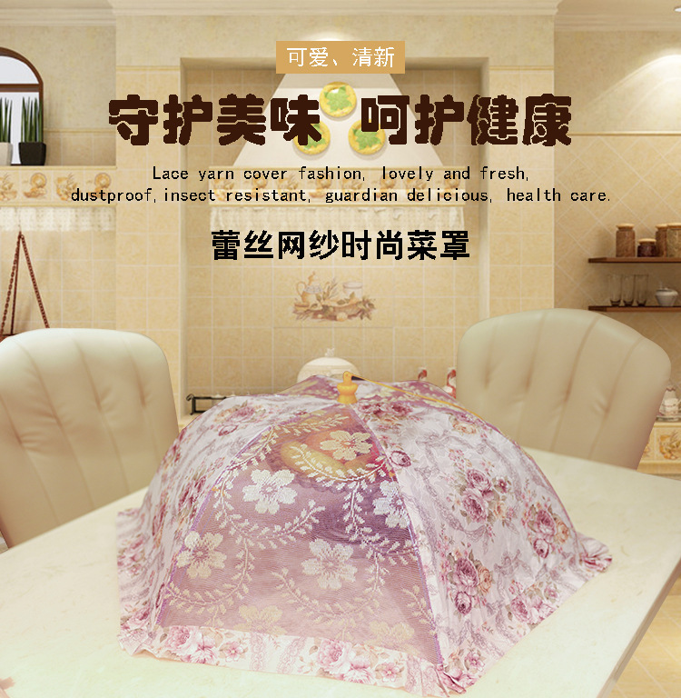 商品名称:供应热销菜罩蕾丝透明家居彩色折叠菜罩防尘罩网布餐桌罩