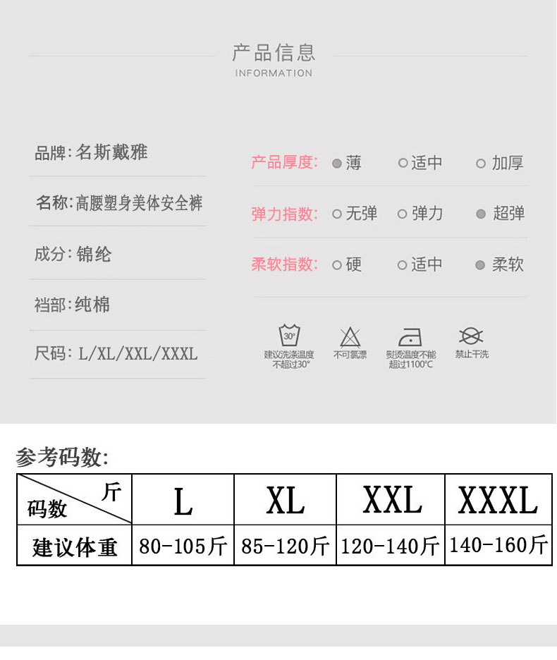 商品名称:网纱透气产后高腰收腹裤女美人美体塑身内裤防卷提臀安全裤打底裤